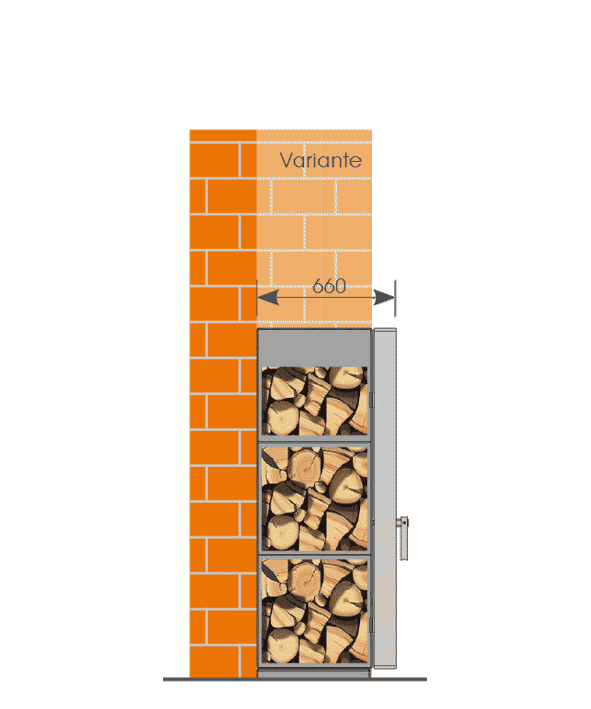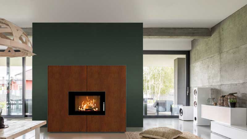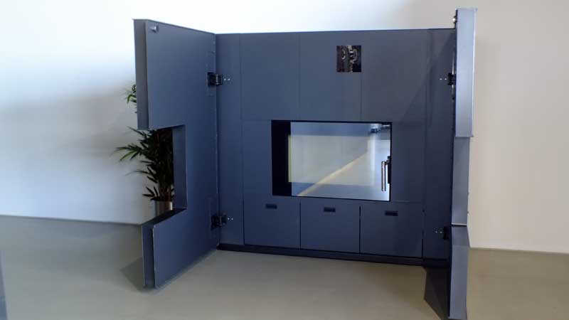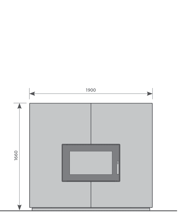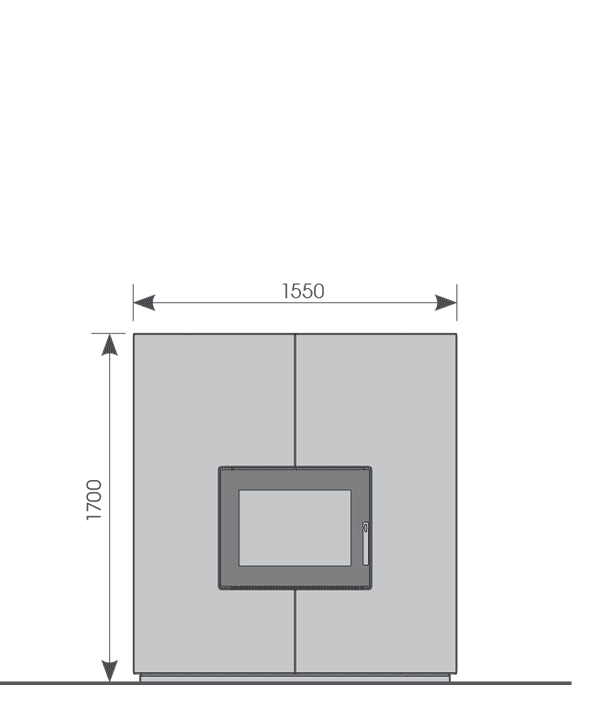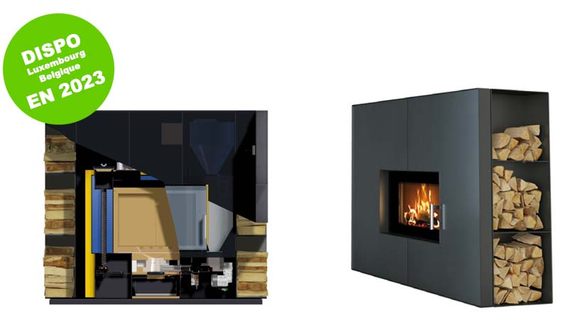 Placement contre un mur : accès à la chambre de combustion en ouvrant la porte foyère. Accès à la chaudière en ouvrant l’habillage frontal.
