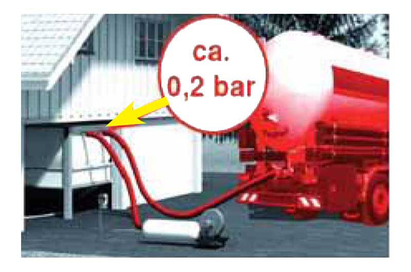 Si le passage est libre à l'intérieur du bâtiment, le camion de livraison peut utiliser 20m de flexible. Toutefois, quand il commence à y avoir de telles longueurs, voir plus, il est préférable de canaliser en tuyaux rigides : ceci limite la casse et rapproche les bouches plus près du camion.